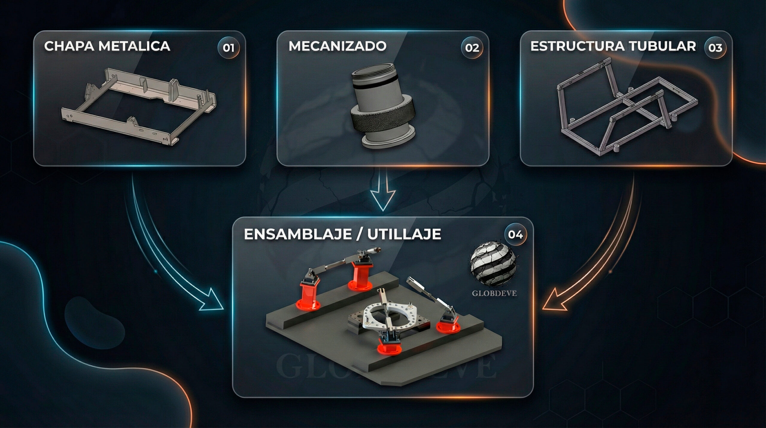 En Globdeve diseñamos y fabricamos soluciones a medida combinando chapa metálica, mecanizado y estructuras tubulares.