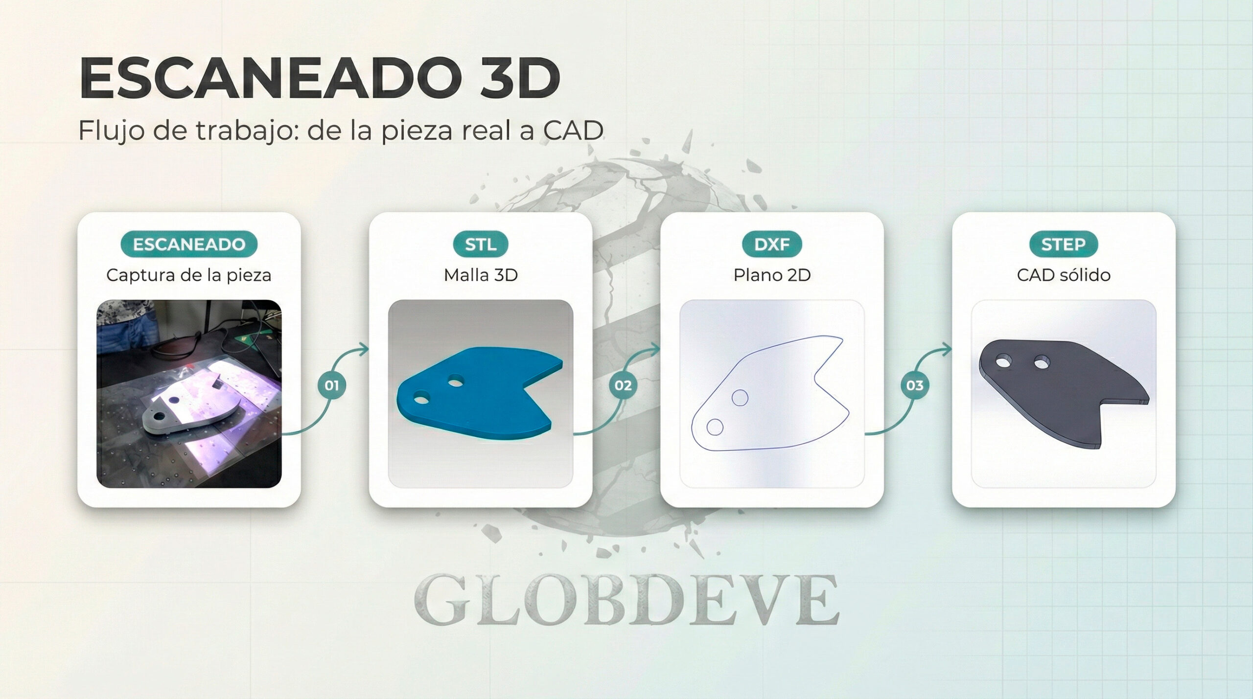 En Globdeve combinamos tecnología de fabricación avanzada, escaneo 3D y soluciones de ingeniería para desarrollar piezas industriales con máxima precisión, optimizando tiempos, costos y rendimiento para nuestros clientes.
